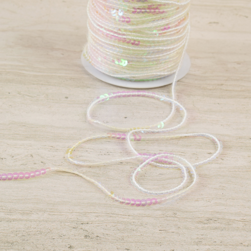 Тесьма с пайетками 3мм белая прозрачная купить в розницу и оптом