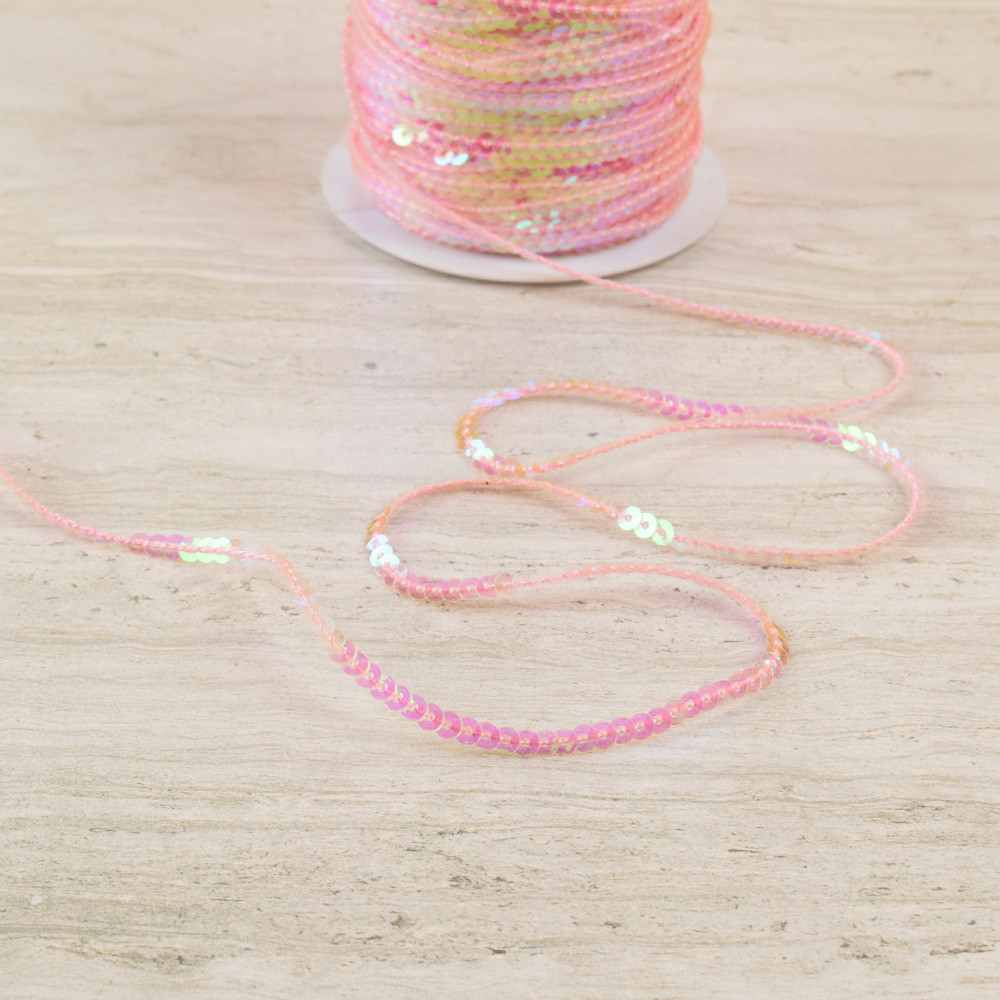 Тесьма с пайетками 3мм розовая прозрачная купить в розницу и оптом