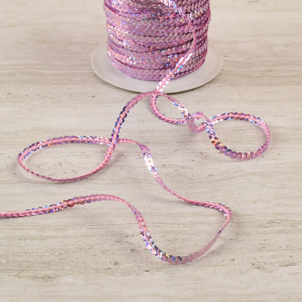 Тесьма с пайетками 3мм розовая яркая купить в розницу и оптом