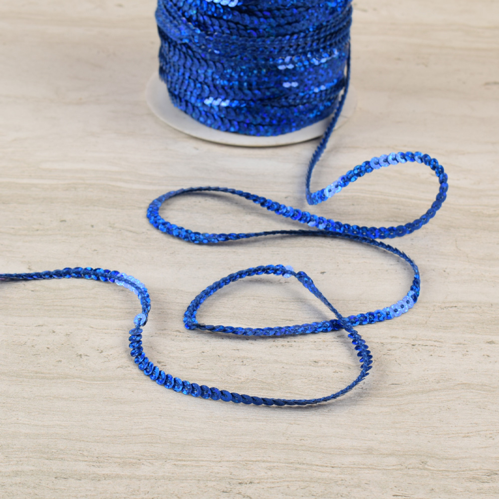 Тесьма с пайетками 3мм синяя электрик купить в розницу и оптом