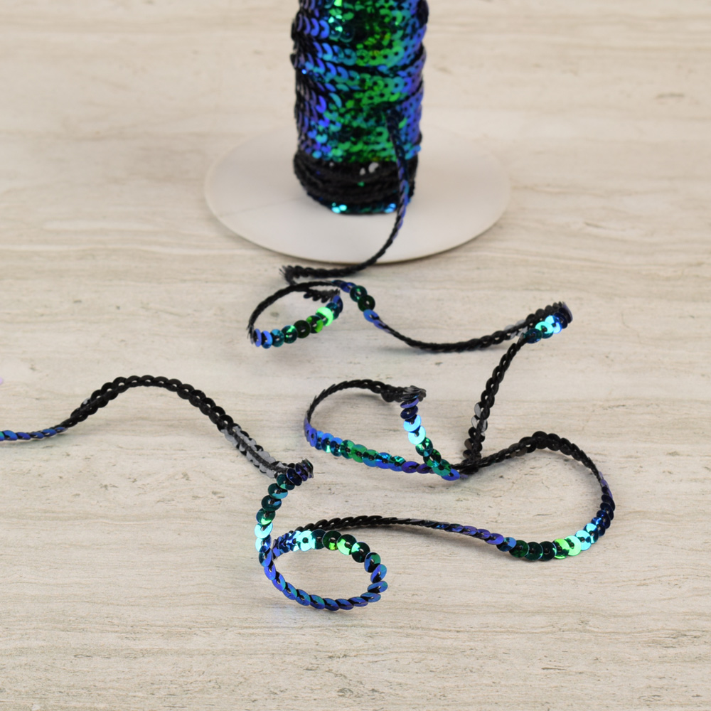 Тесьма с пайетками 3мм зелено-синяя купить в розницу и оптом