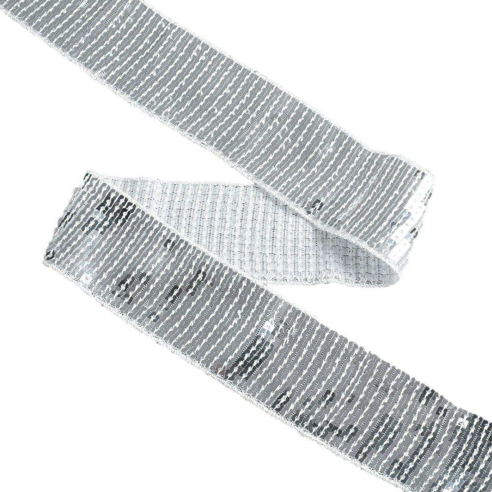 Тесьма с пайетками 40мм серебро купить в розницу и оптом