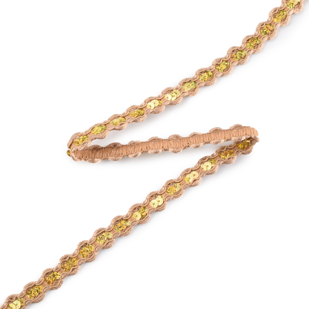 Тесьма с пайетками плетеная 15мм бежево-золотая купить в розницу и оптом