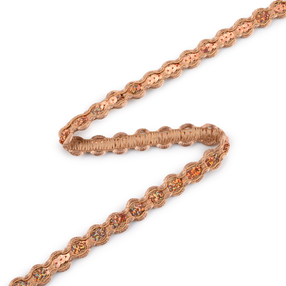 Тесьма с пайетками плетеная 15мм коричневая светлая купить в розницу и оптом