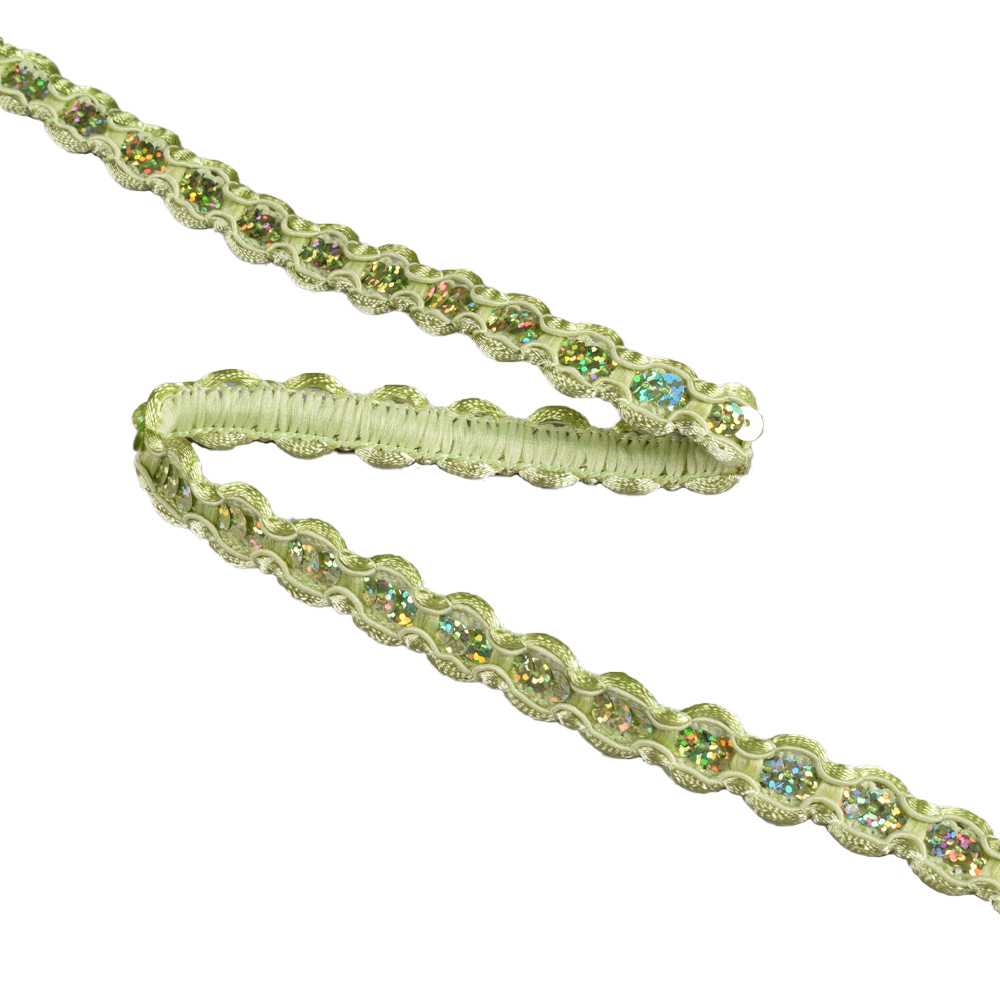 Тесьма с пайетками плетеная 15мм оливковая купить в розницу и оптом