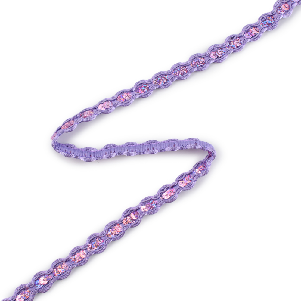 Тесьма с пайетками плетеная 15мм сиреневая купить в розницу и оптом