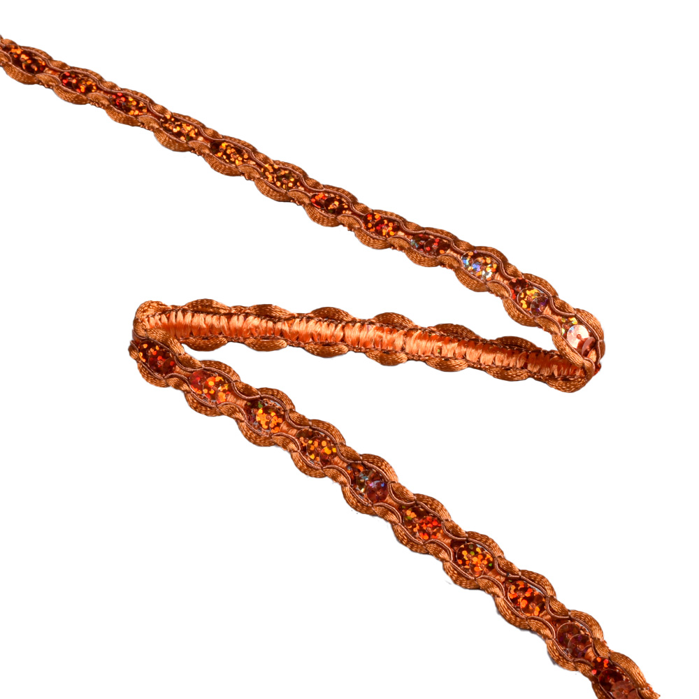 Тесьма с пайетками плетеная 15мм терракотовая купить в розницу и оптом