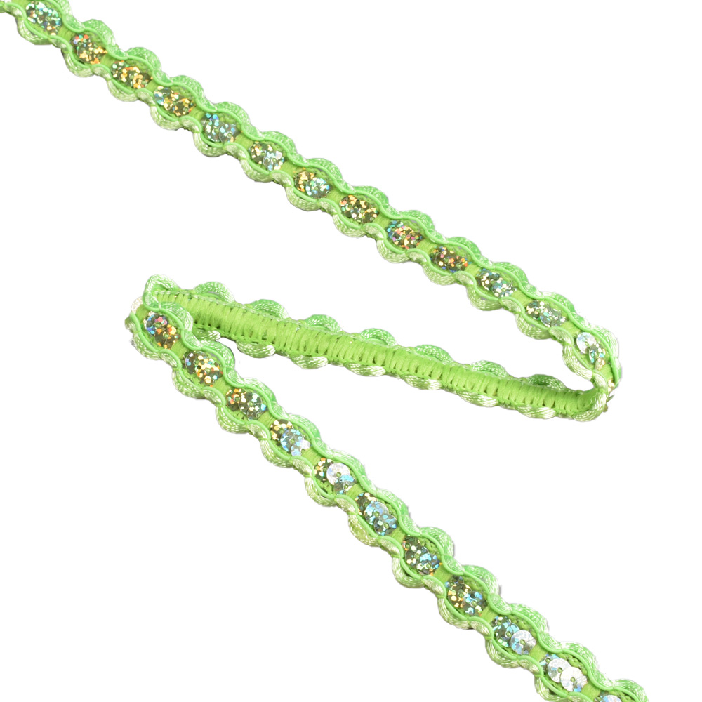 Тесьма с пайетками плетеная 15мм зеленая купить в розницу и оптом