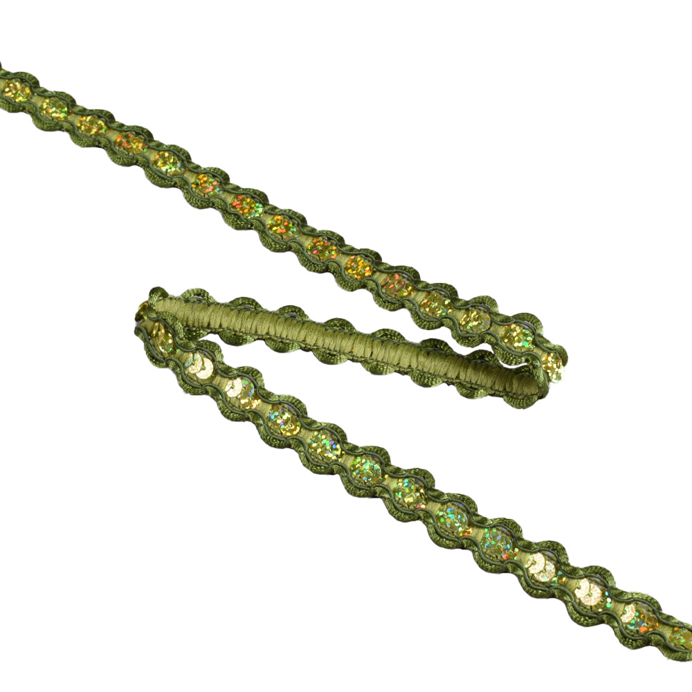 Тесьма с пайетками плетеная 15мм зеленая темная. Страна производитель: Китай.