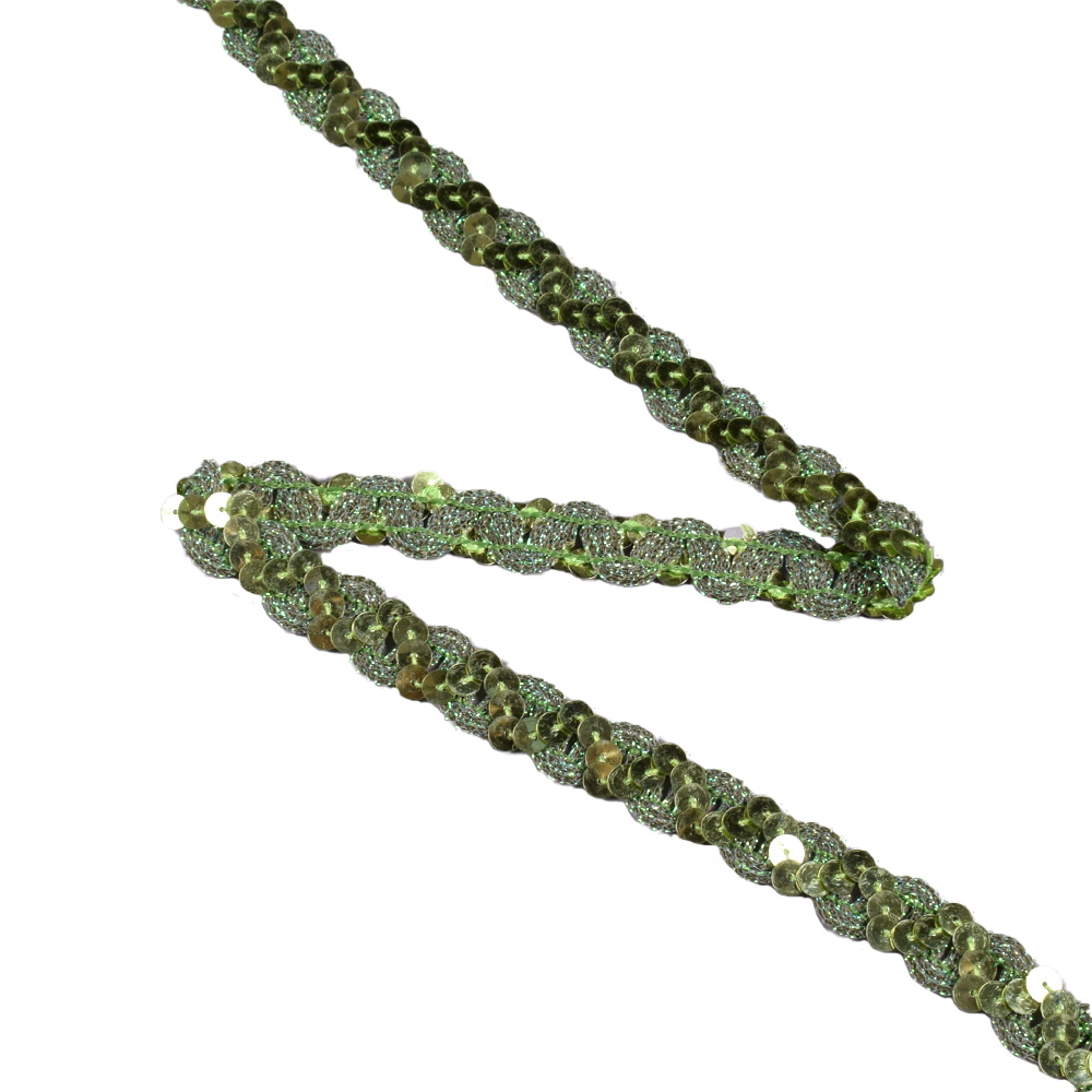 Тесьма с пайетками волна 15мм зеленая купить в розницу и оптом
