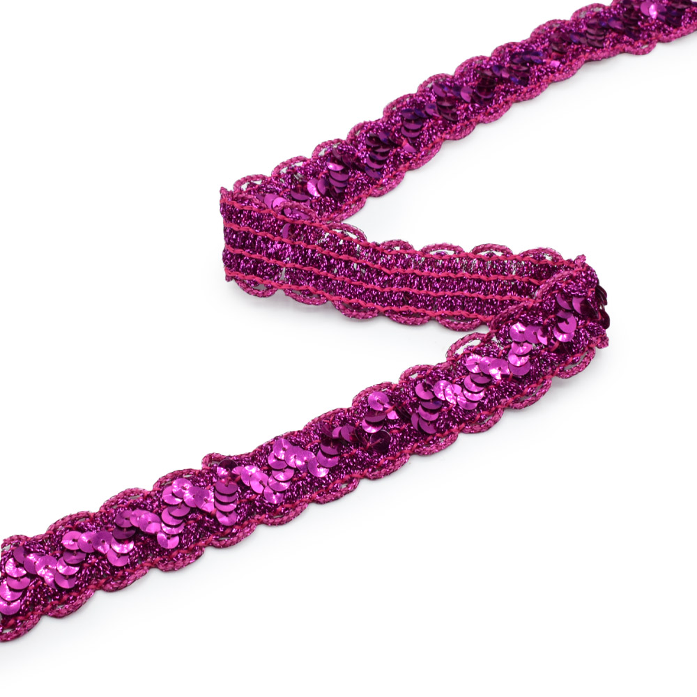 Тесьма с пайетками волна 23мм фуксия купить в розницу и оптом