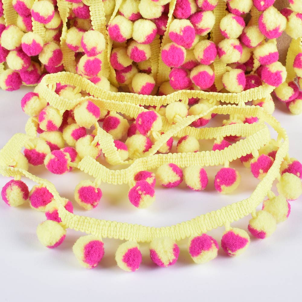 Тесьма с помпонами 10мм лимонная, фиолетово-лимонные помпоны купить в розницу и оптом
