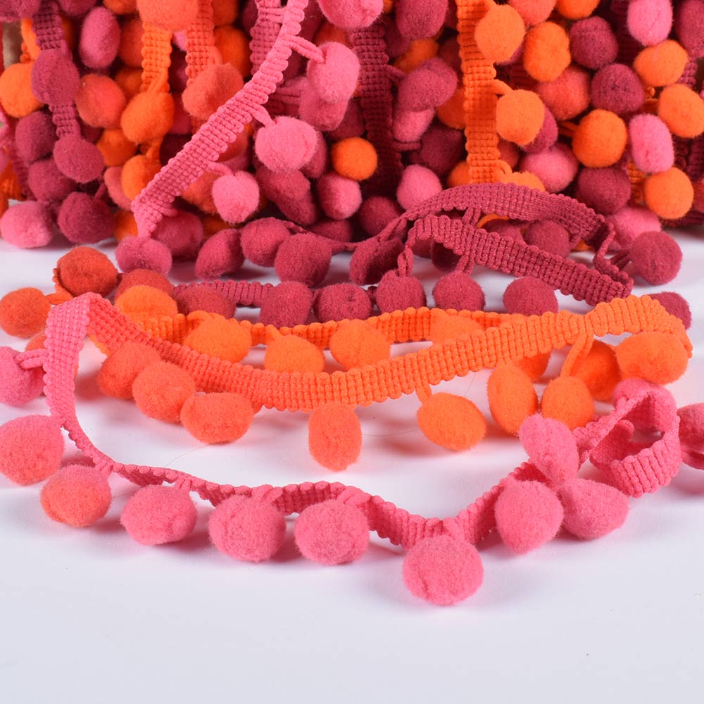 Тесьма с помпонами 10мм радуга (малиновый, оранжевый, фрезовый) купить в розницу и оптом
