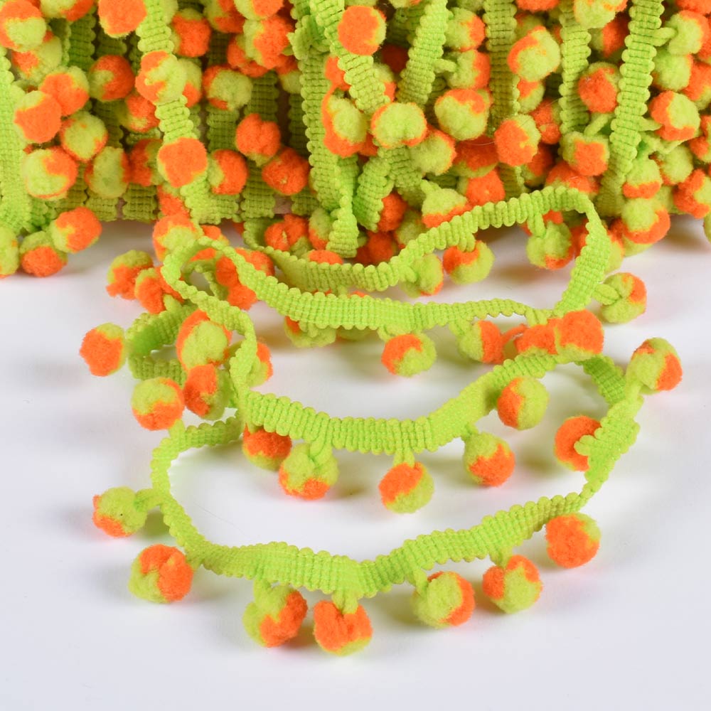 Тесьма с помпонами 10мм салатовая, оранжево-салатовые помпоны купить в розницу и оптом
