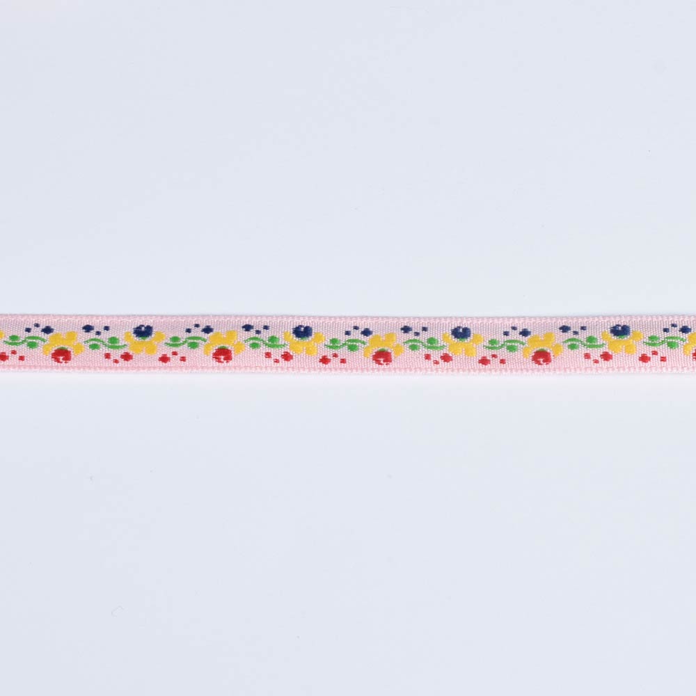 Тесьма жаккардовая 10мм орнамент цветочный, розовая. Страна производитель: Китай.