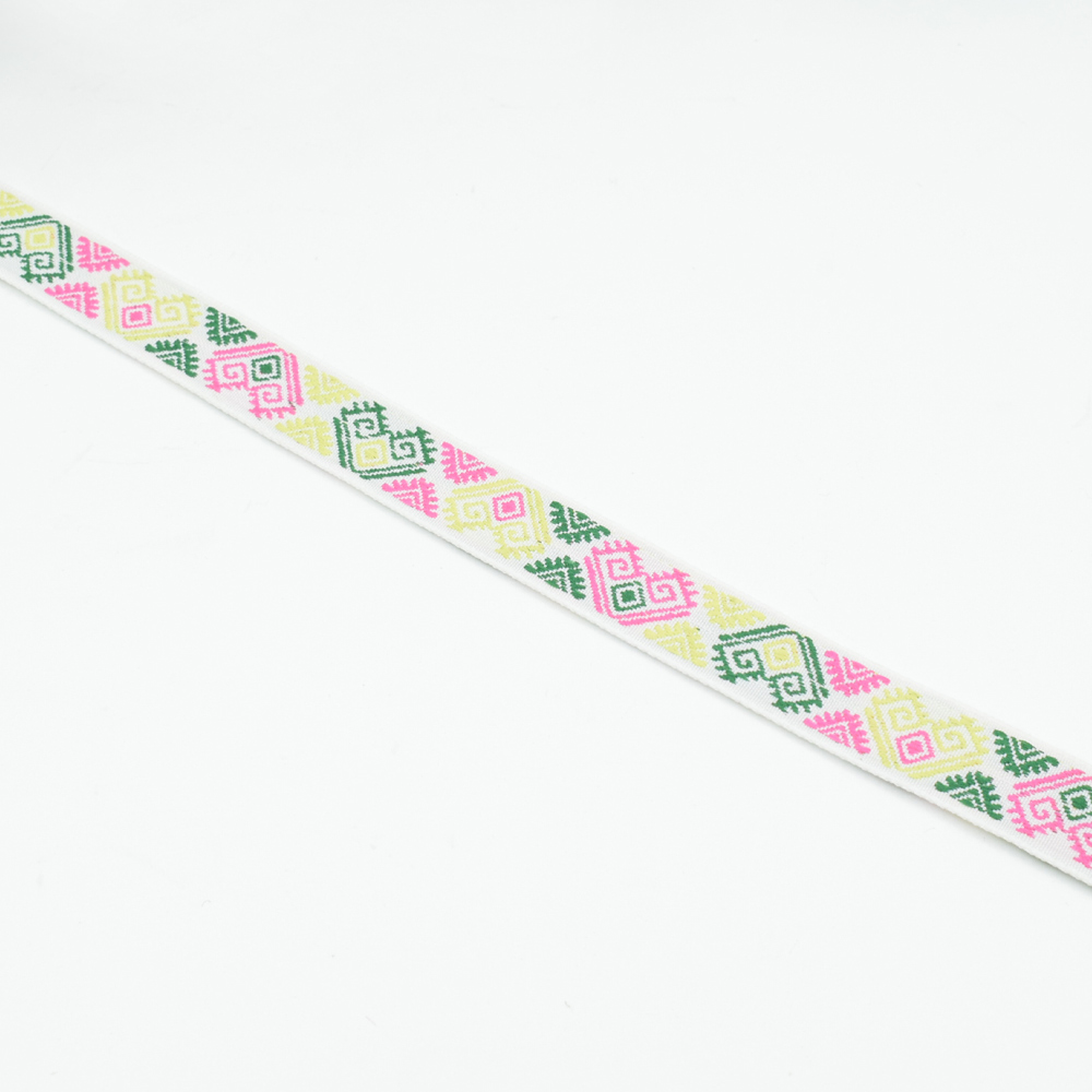 Тесьма жаккардовая 15мм орнамент геометрический на белом купить в розницу и оптом