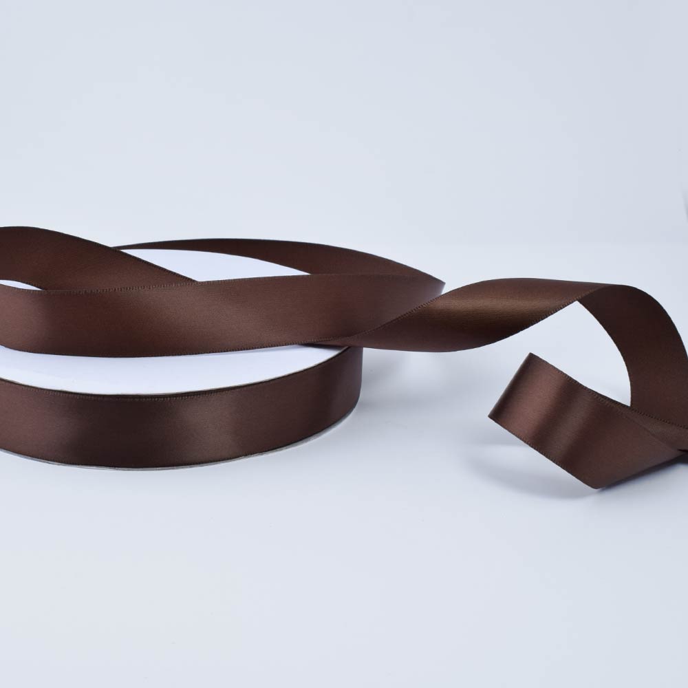 Лента атласная 25мм коричневая темная А2-08-056 на метраж (бобина 100яр/356,5г) купить в розницу и оптом