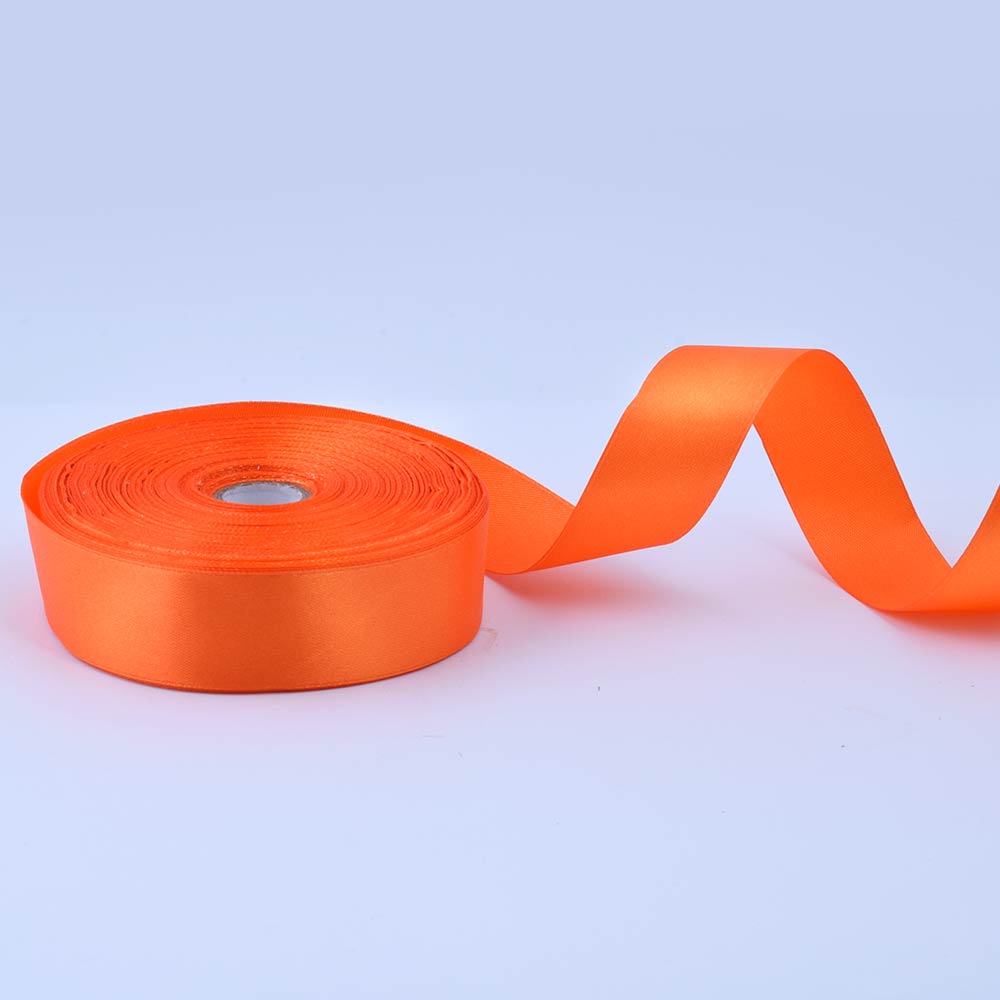 Лента атласная 25мм оранжевая яркая А1-08-025 на метраж (бобина 50яр/119г) купить в розницу и оптом