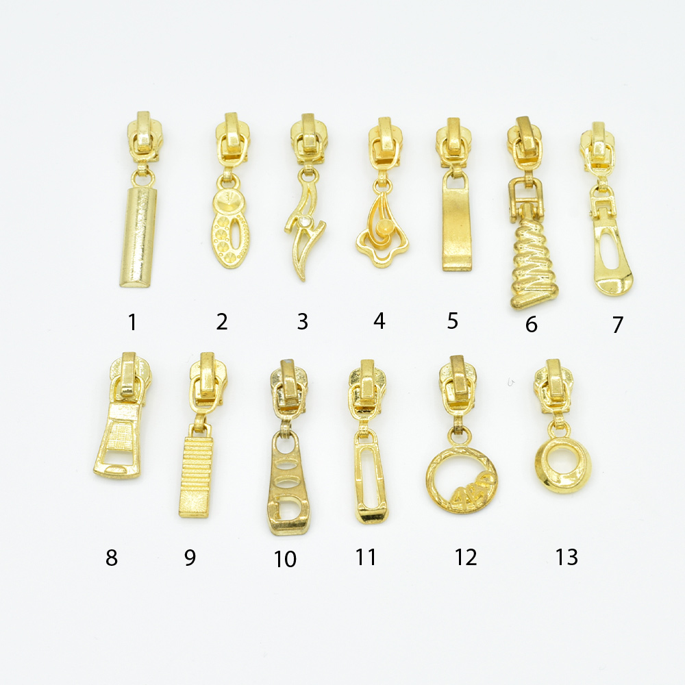 Бегунок на металлическую молнию №3 золото с фигурным язычком купить в розницу и оптом