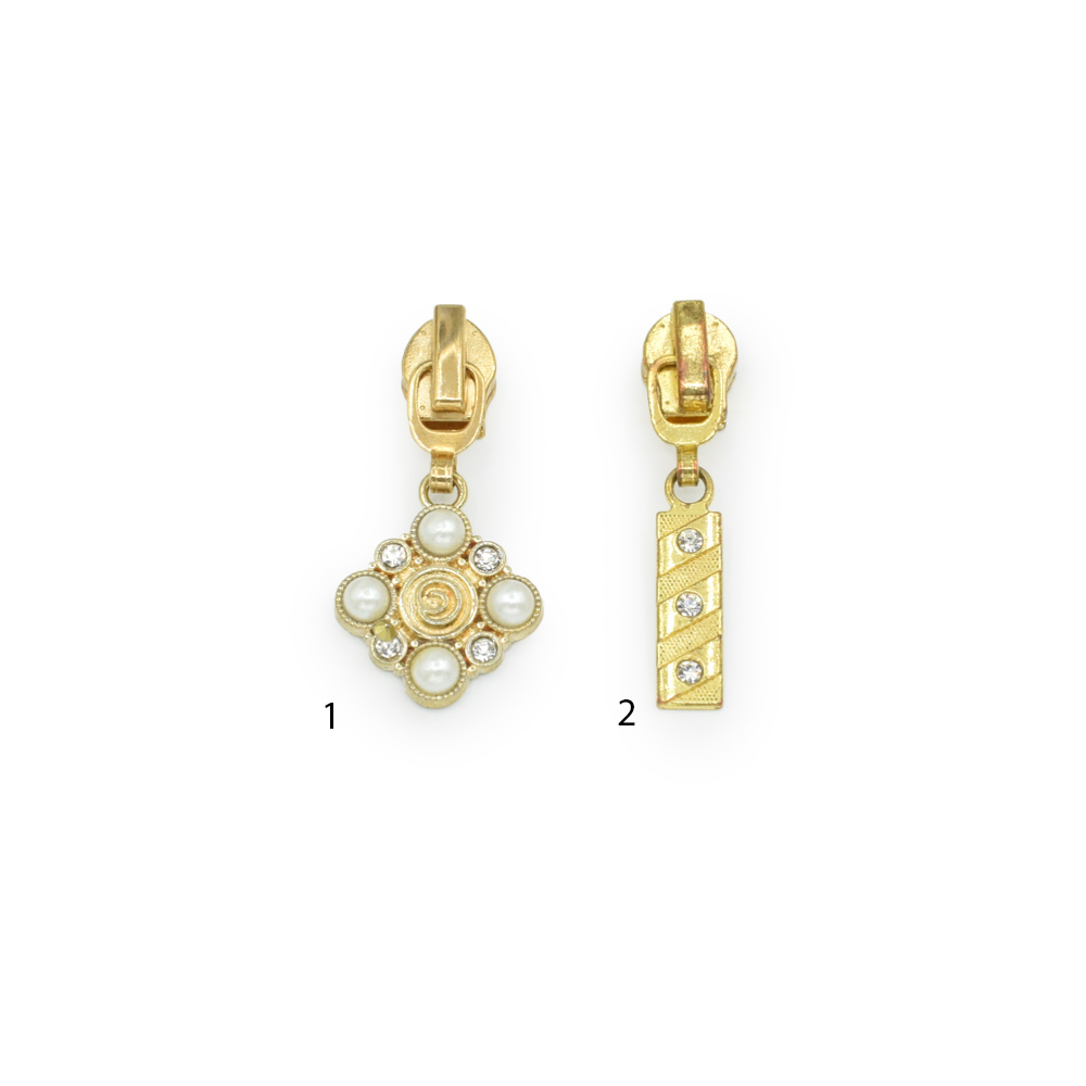 Бегунок на спиральную молнию №5 золото со стразами купить в розницу и оптом