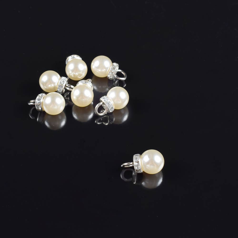 Подвеска жемчужная со стразами на кольце серебро 15мм 1шт купить в розницу и оптом