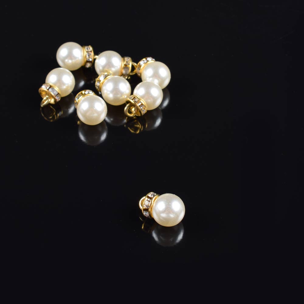 Подвеска жемчужная со стразами на кольце золото 15мм 1шт купить в розницу и оптом