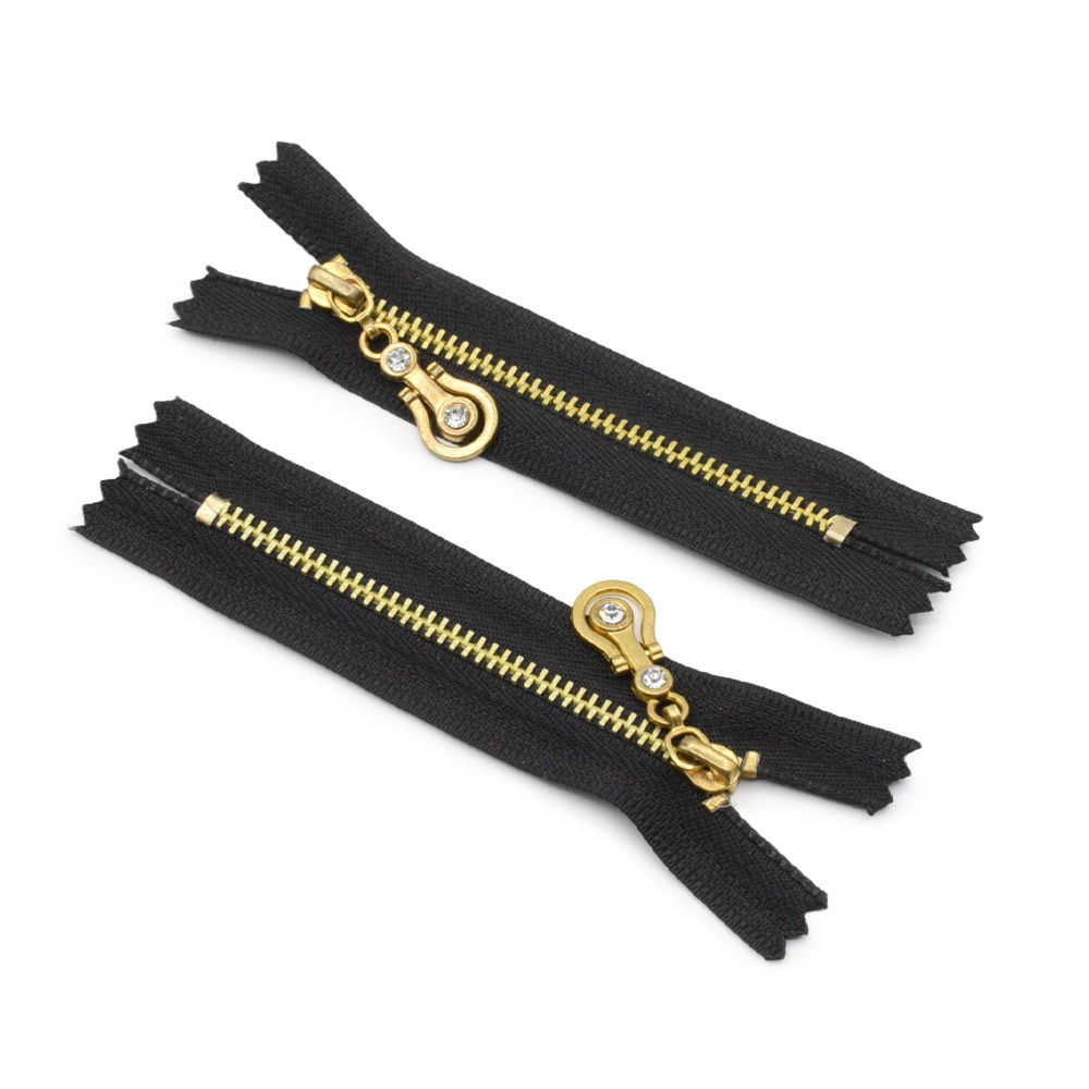 Молния металл М-9 неразъемная х/б золотистые зубцы, бегунок со стразами черная купить в розницу и оптом