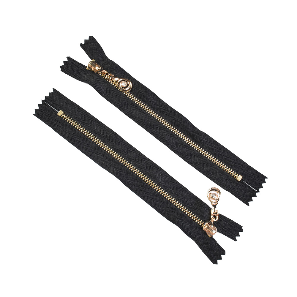 Молния металл М-16 Тип-3 неразъемная х/б бегунок со стразой золото черная купить в розницу и оптом