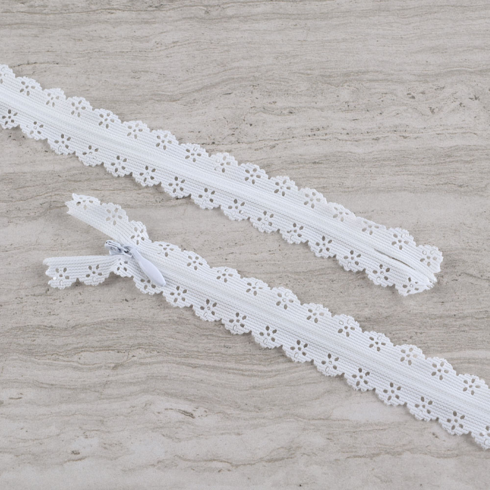 Молния потайная М-20 Тип-3 неразъемная х/б белая ажурная купить в розницу и оптом