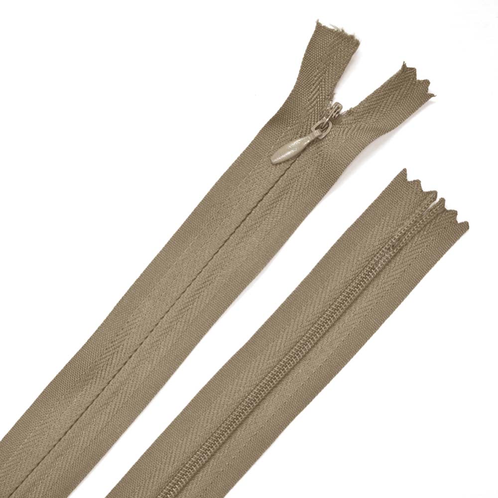 Молния потайная М-24 Тип-3 неразъемная х/б коричневая с серым отливом. Страна производитель: Китай.