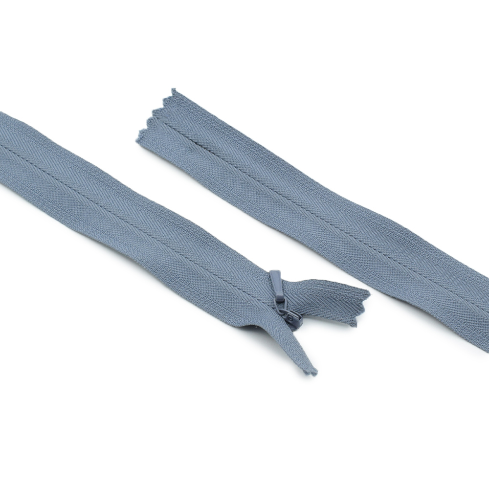 Молния потайная М-24 Тип-3 неразъемная х/б серая с сизым оттенком. Страна производитель: Китай.