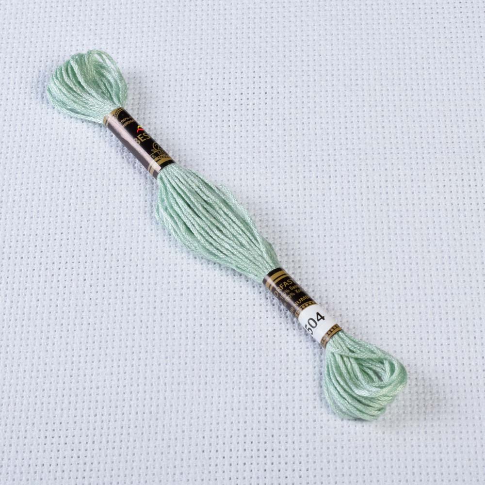 Мулине Bestex 504 8м, Сине-зеленый, очень светлый. Страна производитель: Китай. Мулине Bestex высококачественные, декоративные, хлопковые нити для вышивания. Нити по 8 метров на 6 сложений. Мулине не линяет во время стирки, не выцветает от солнечных лучей, удобно в работе. Номера нитей соответствуют палитре французского мулине DMC, 100% хлопок.