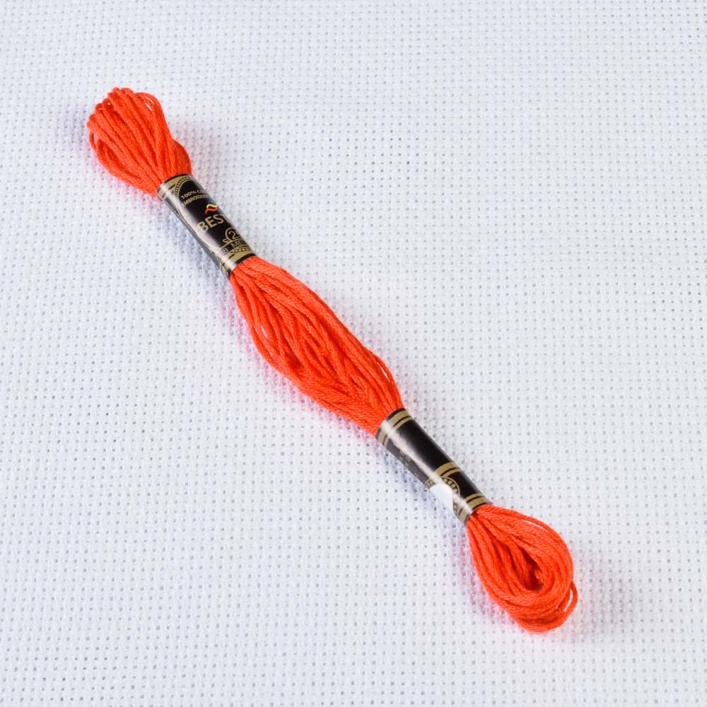 Мулине Bestex 606 8м, Яркий красно-оранжевый. Страна производитель: Китай. Мулине Bestex высококачественные, декоративные, хлопковые нити для вышивания. Нити по 8 метров на 6 сложений. Мулине не линяет во время стирки, не выцветает от солнечных лучей, удобно в работе. Номера нитей соответствуют палитре французского мулине DMC, 100% хлопок.