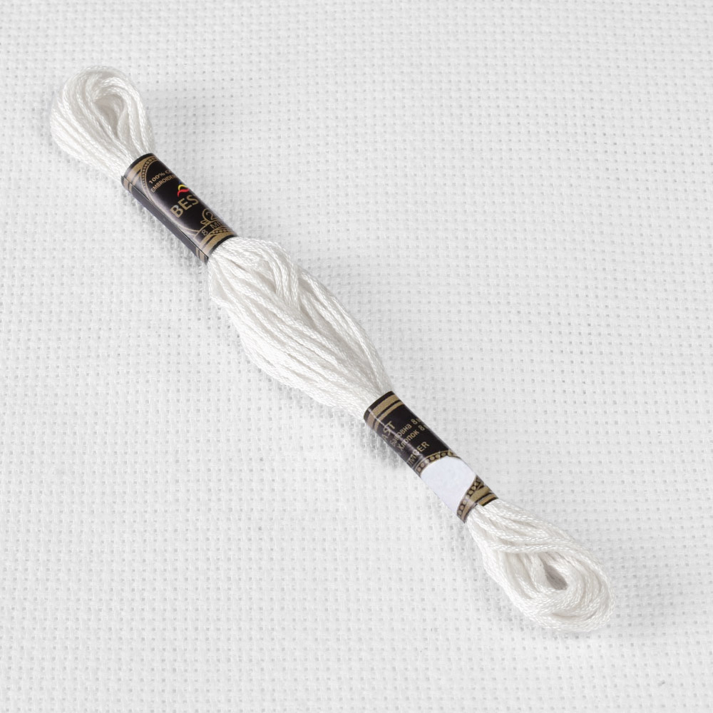 Мулине Bestex 8м, белый. Страна производитель: Китай. Мулине Bestex высококачественные, декоративные, хлопковые нити для вышивания. Нити по 8 метров на 6 сложений. Мулине не линяет во время стирки, не выцветает от солнечных лучей, удобно в работе. Номера нитей соответствуют палитре французского мулине DMC, 100% хлопок.