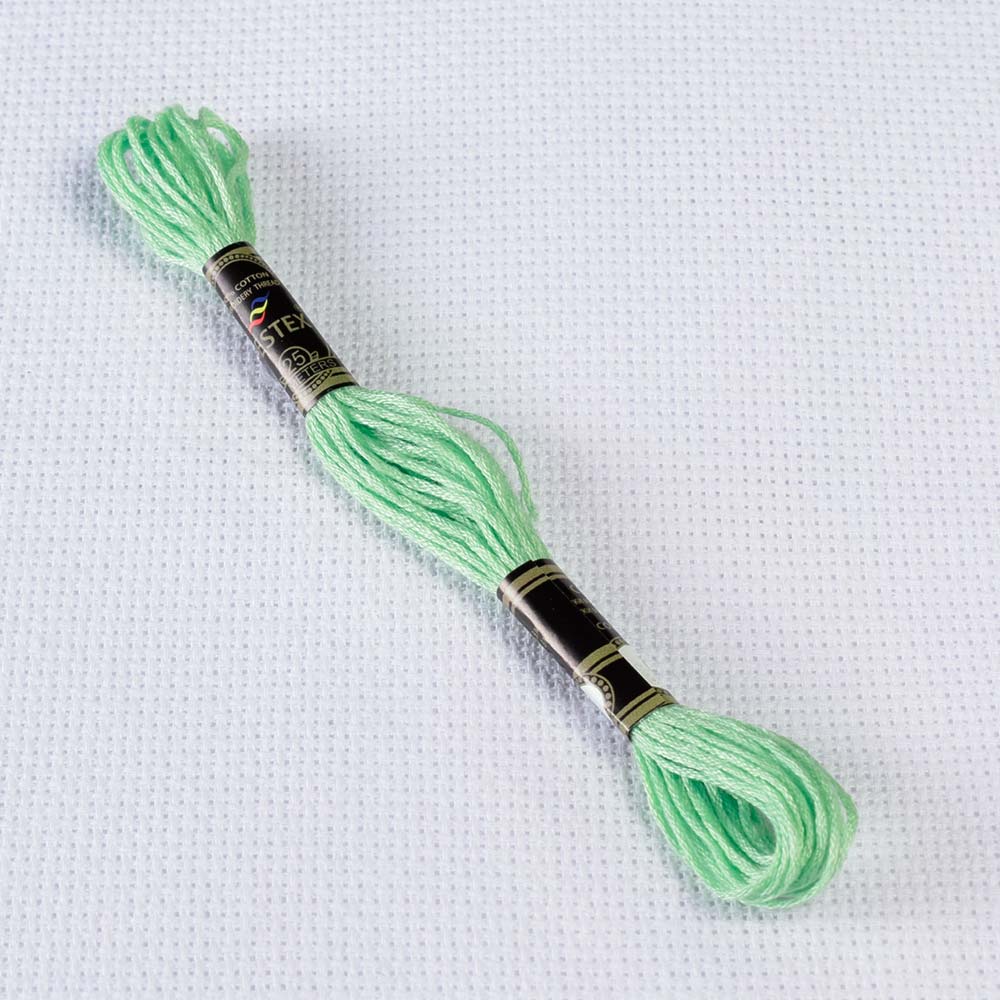Мулине Bestex 966 8м, Нежно зеленый, средний. Страна производитель: Китай. Мулине Bestex высококачественные, декоративные, хлопковые нити для вышивания. Нити по 8 метров на 6 сложений. Мулине не линяет во время стирки, не выцветает от солнечных лучей, удобно в работе. Номера нитей соответствуют палитре французского мулине DMC, 100% хлопок.