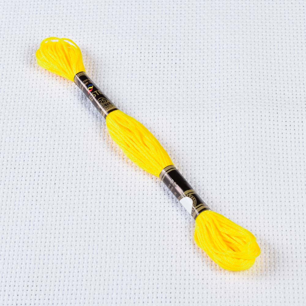 Мулине Bestex 973 8м, Канареечный, яркий. Страна производитель: Китай. Мулине Bestex высококачественные, декоративные, хлопковые нити для вышивания. Нити по 8 метров на 6 сложений. Мулине не линяет во время стирки, не выцветает от солнечных лучей, удобно в работе. Номера нитей соответствуют палитре французского мулине DMC, 100% хлопок.