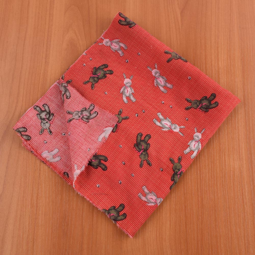 Отрез штапель красный, плюшевые зайки 45х50см. Страна производитель: Китай.