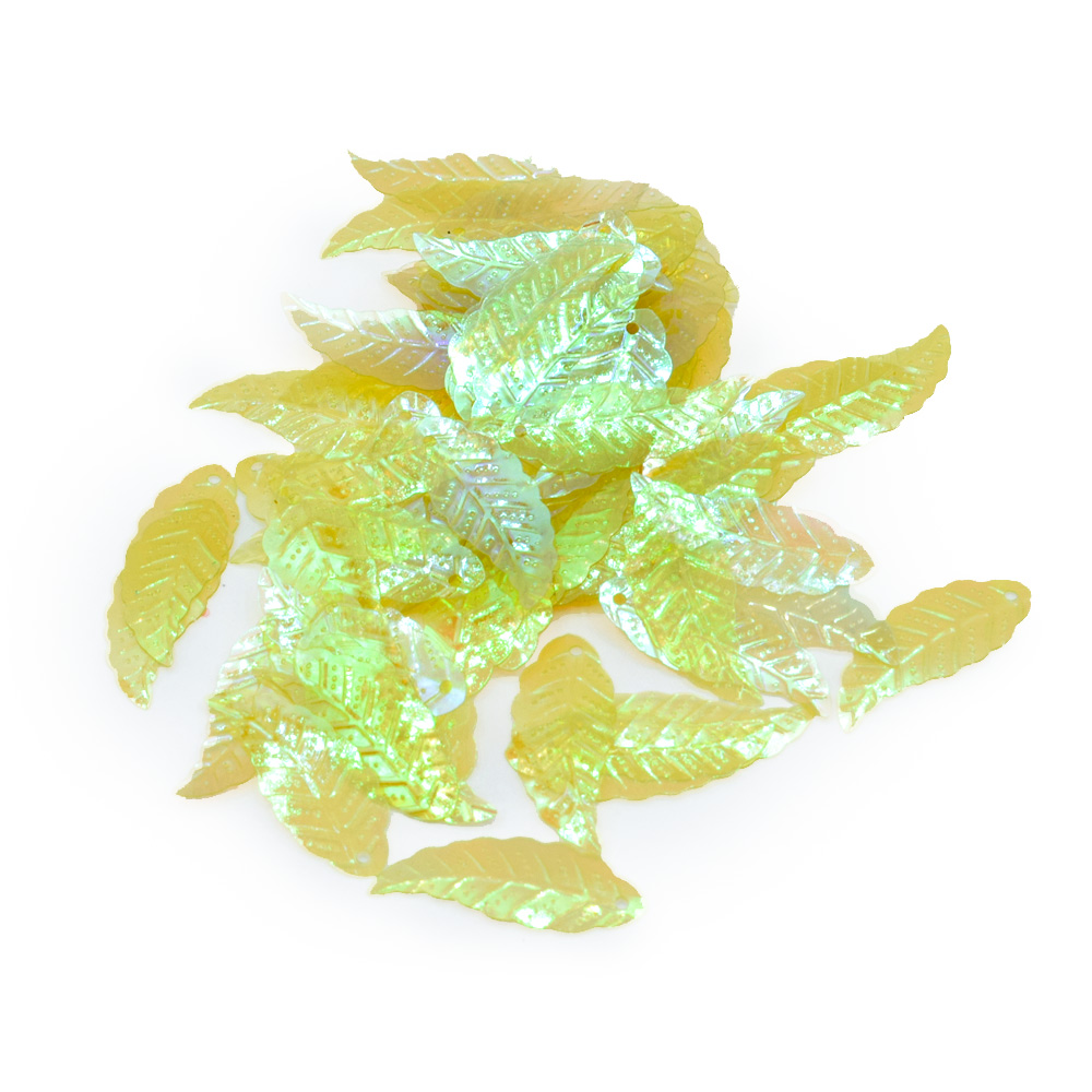 Пайетка хамелеон листик 28х10мм 25 г прозрачная зеленая купить в розницу и оптом