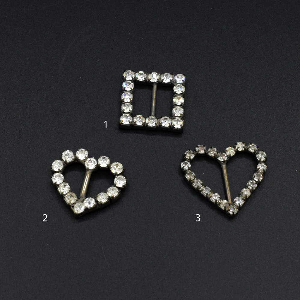 Пряжка неразъемная со стразами металл 10мм сердце прямоугольник серебристая купить в розницу и оптом
