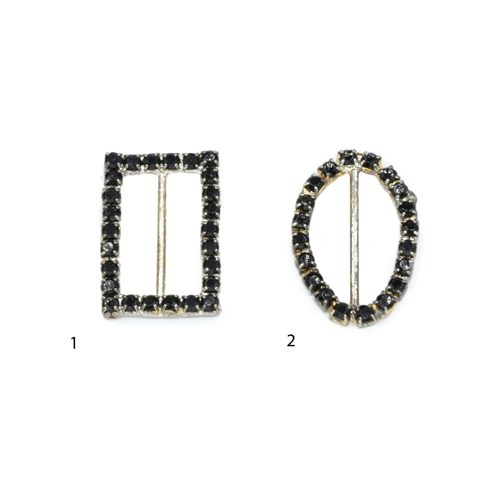 Пряжка неразъемная со стразами металл 23мм серебристо-черная купить в розницу и оптом