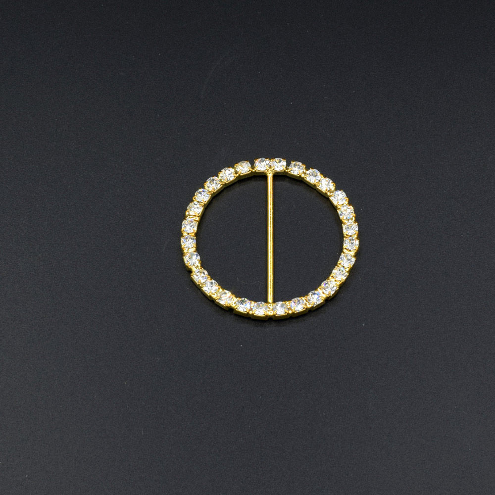 Пряжка неразъемная со стразами металл 35мм круглая 42х42мм золотистая купить в розницу и оптом
