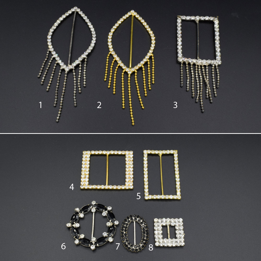 Пряжка неразъемная со стразами металл с бахромой 3 вида 45мм золотистые серебристые. Страна производитель: Китай.