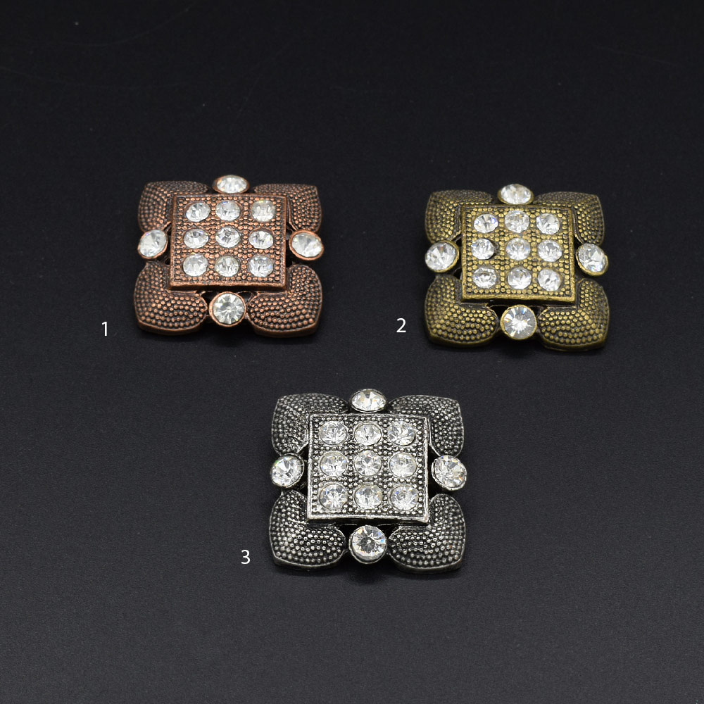 Пуговица на ножке металл квадратная с камнем белым 31х31 мм купить в розницу и оптом