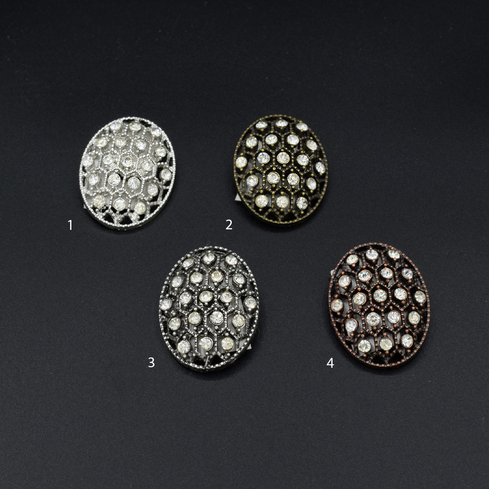 Пуговица на ножке металл овальная с камнем белым 30х23 мм купить в розницу и оптом