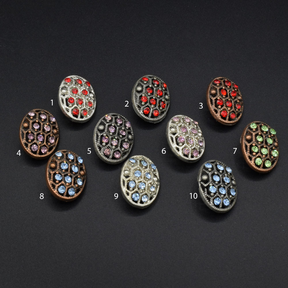 Пуговица на ножке металл овальная с камнем цветным 22х16 мм купить в розницу и оптом