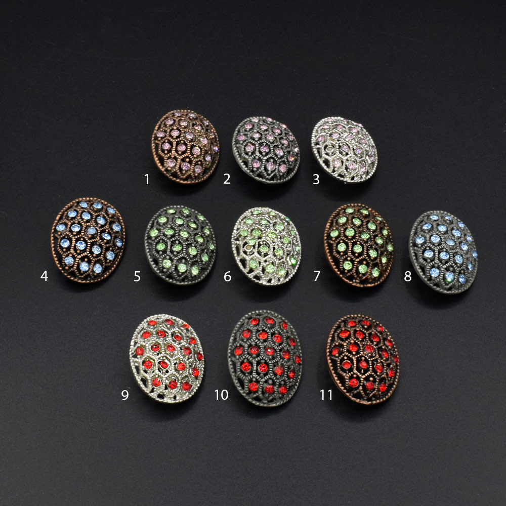 Пуговица на ножке металл овальная с камнем цветным 30х23 мм купить в розницу и оптом