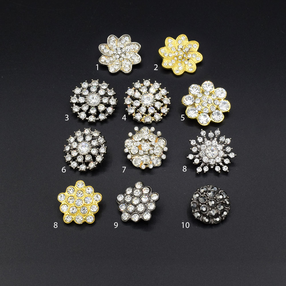 Пуговицы со стразами белыми золотистые, серебристые диаметр 2см купить в розницу и оптом