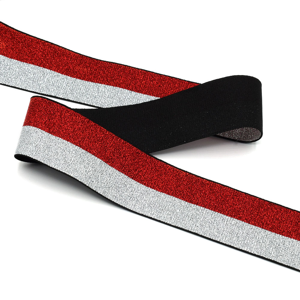 Резинка 40мм серебристая/красная полоска с люрексом купить в розницу и оптом