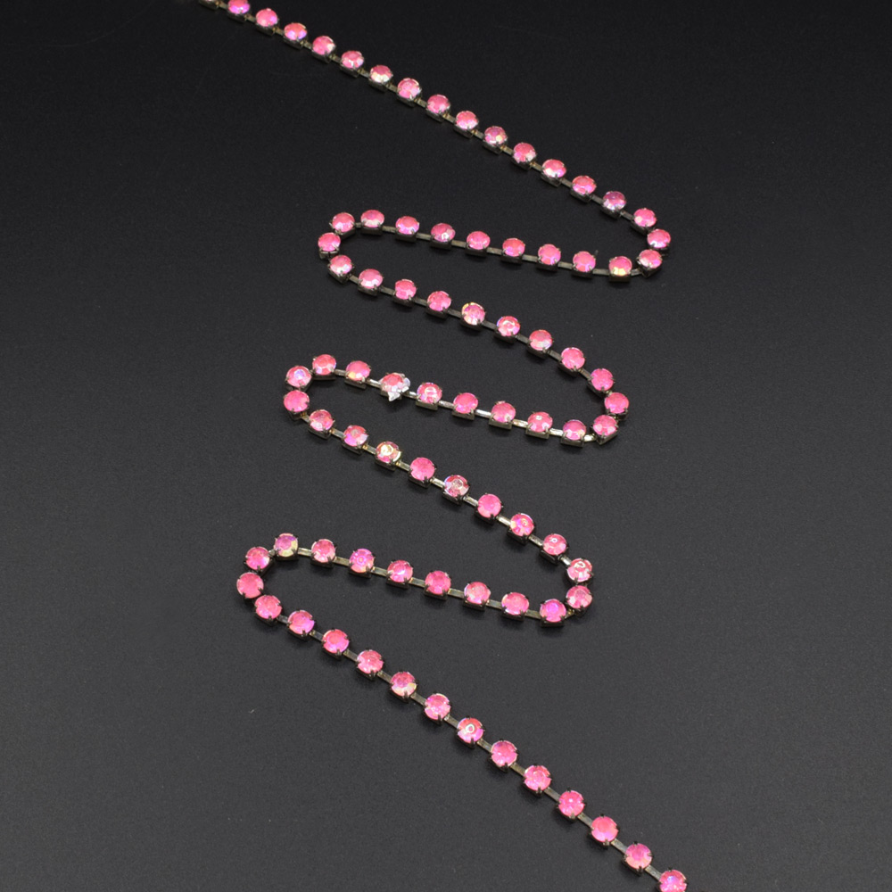 Тесьма со стразами 4 мм радуга 3 мм малиновая серебро купить в розницу и оптом