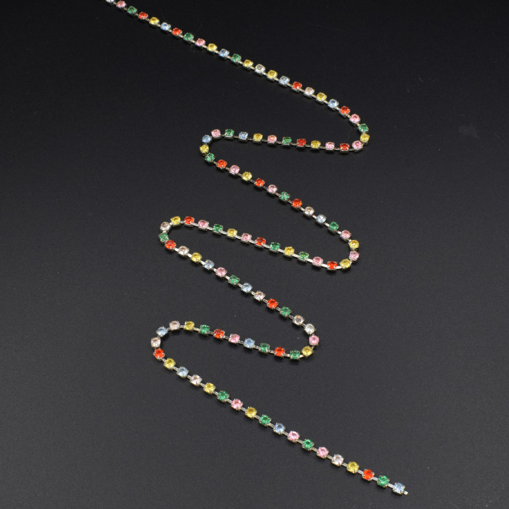 Тесьма со стразами 4 мм радуга 3 мм разноцветная серебро купить в розницу и оптом